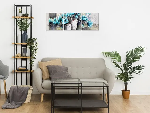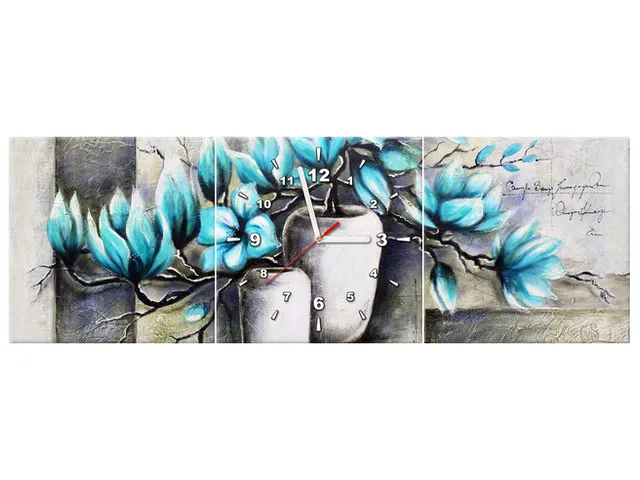 Úvod » Obrazy » Obrazy s hodinami » Obraz do obrývačky s hodinami Magnólie v modrej farbe