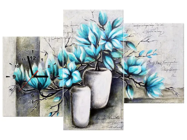 Úvod » Obrazy » Obrazy s hodinami » Obraz do obrývačky s hodinami Magnólie v modrej farbe