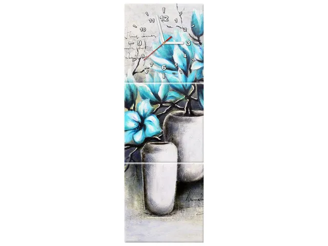 Úvod » Obrazy » Obrazy s hodinami » Obraz do obrývačky s hodinami Magnólie v modrej farbe
