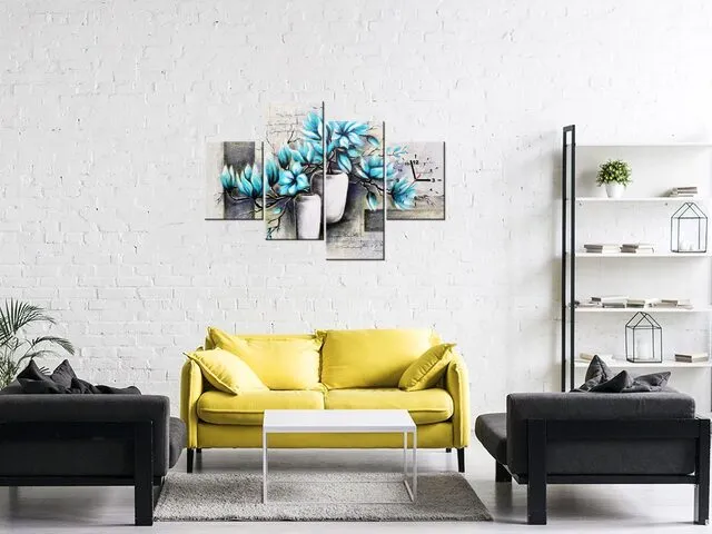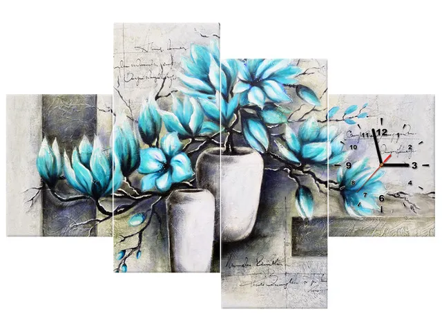 Úvod » Obrazy » Obrazy s hodinami » Obraz do obrývačky s hodinami Magnólie v modrej farbe