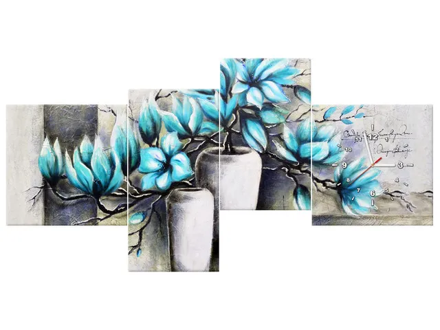 Úvod » Obrazy » Obrazy s hodinami » Obraz do obrývačky s hodinami Magnólie v modrej farbe
