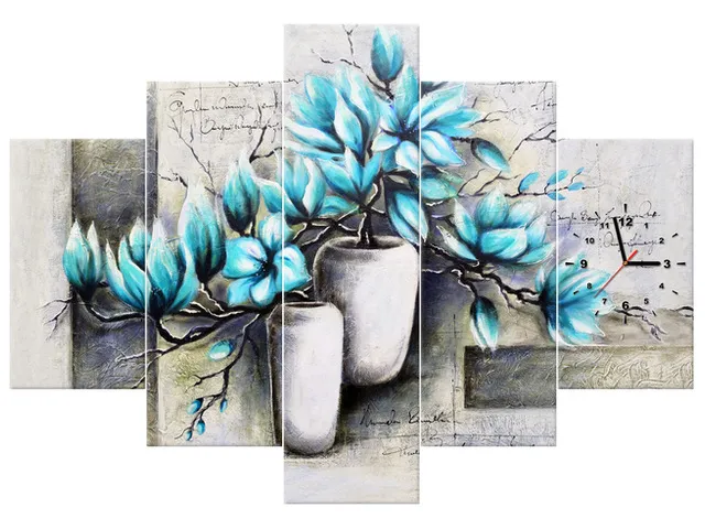 Úvod » Obrazy » Obrazy s hodinami » Obraz do obrývačky s hodinami Magnólie v modrej farbe