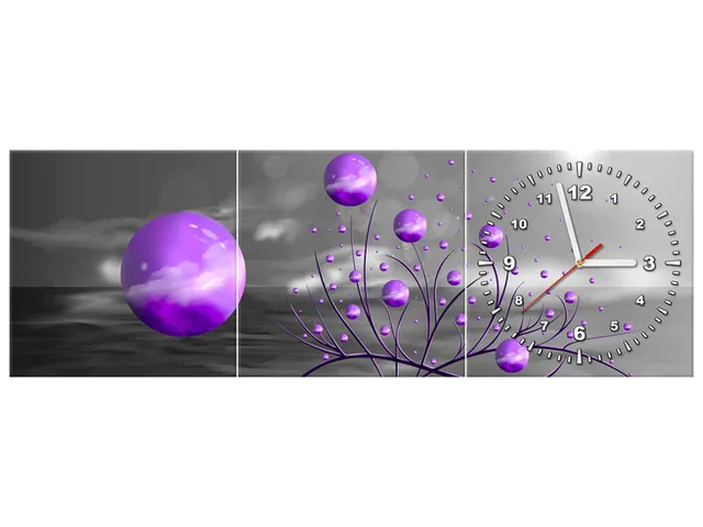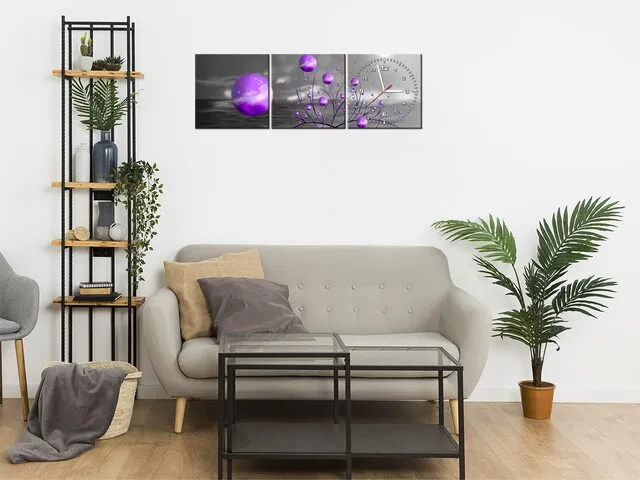 ZP5603A_3AX Obraz do obývačky s hodinami Fialové gule v noci |