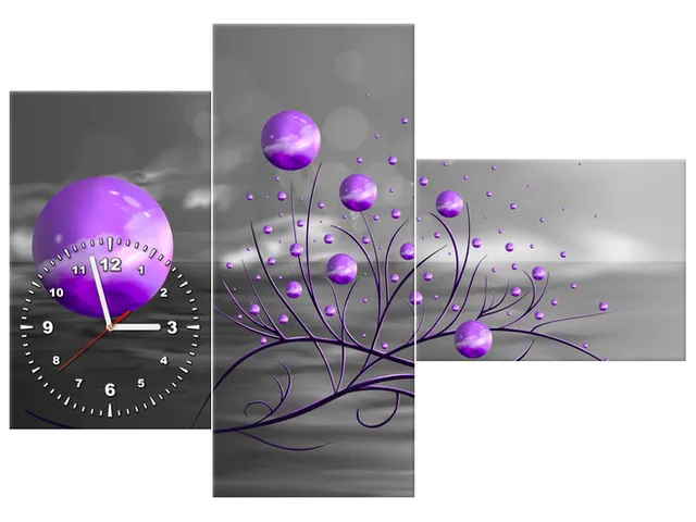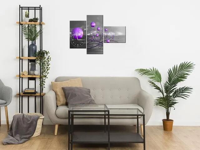 Obraz do obývačky s hodinami Fialové gule v noci