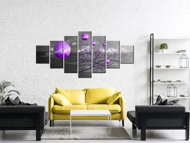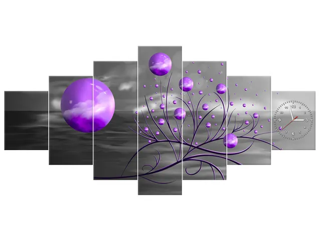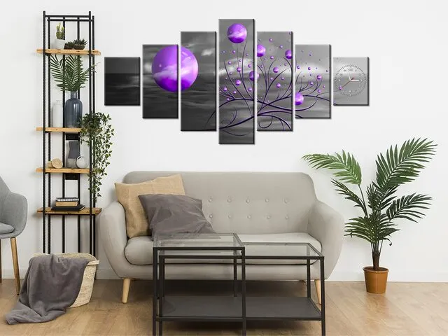 Obraz do obývačky s hodinami Fialové gule v noci