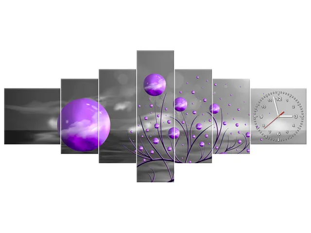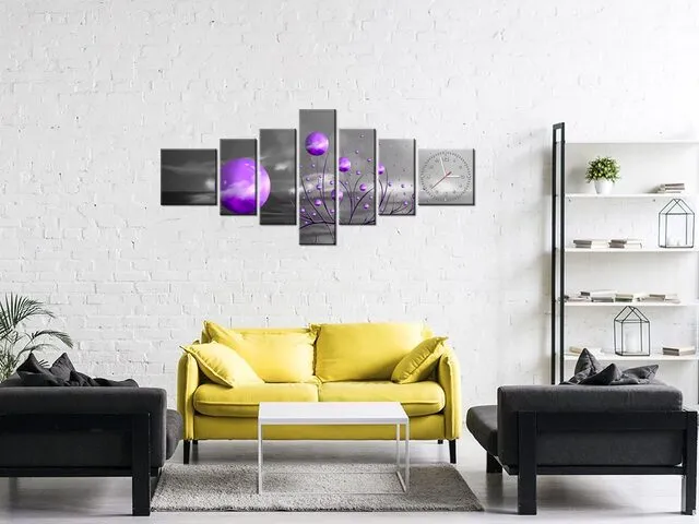 Obraz do obývačky s hodinami Fialové gule v noci