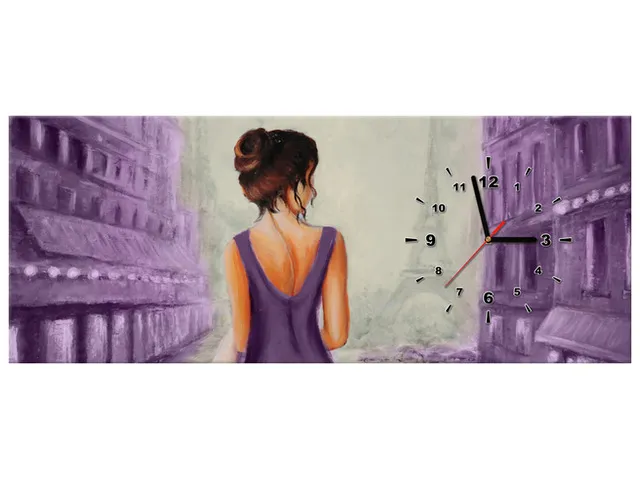 Úvod » Obrazy » Obrazy s hodinami » Obraz do spálne s hodinami Prechádzka v Paríži vo fialovej