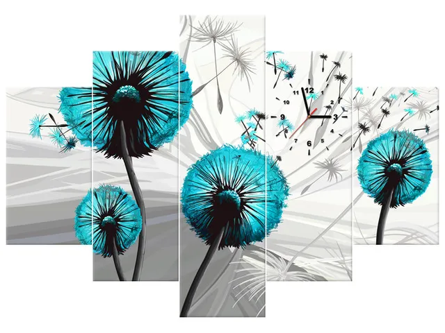 ZP5031A_5B Obraz hodiny Púpavy v tyrkysovej |