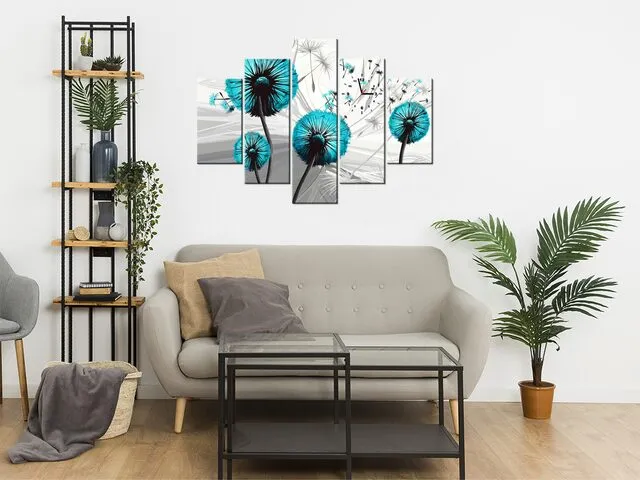 ZP5031A_3AW Obraz hodiny Púpavy v tyrkysovej |