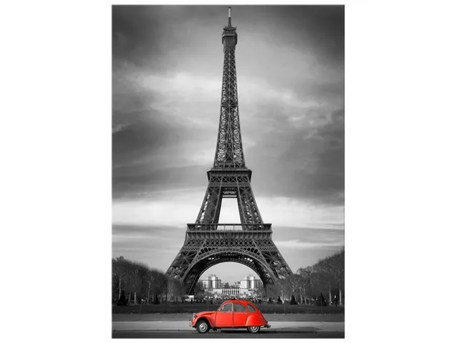 Úvod » Obrazy » Obraz na plátne Červené auto pred Eiffelovkou