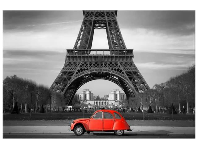 Barion Pixel Obraz na plátne Červené auto pred Eiffelovkou