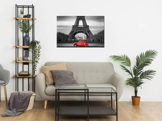 Úvod » Obrazy » Obraz na plátne Červené auto pred Eiffelovkou