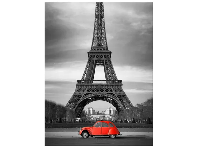 1116A_1K Obraz na plátne Červené auto pred Eiffelovkou |