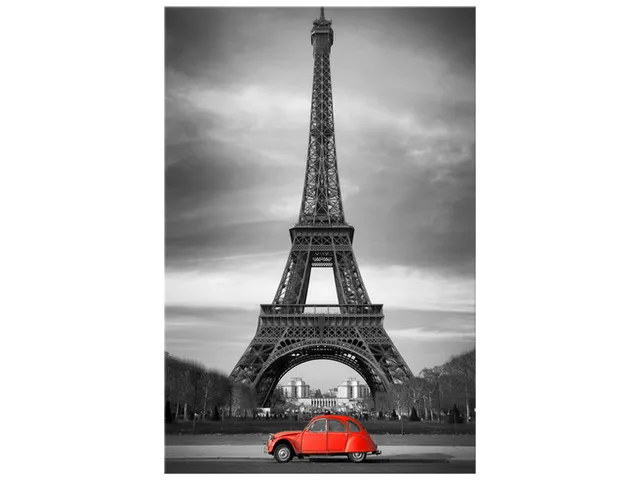 Úvod » Obrazy » Obraz na plátne Červené auto pred Eiffelovkou