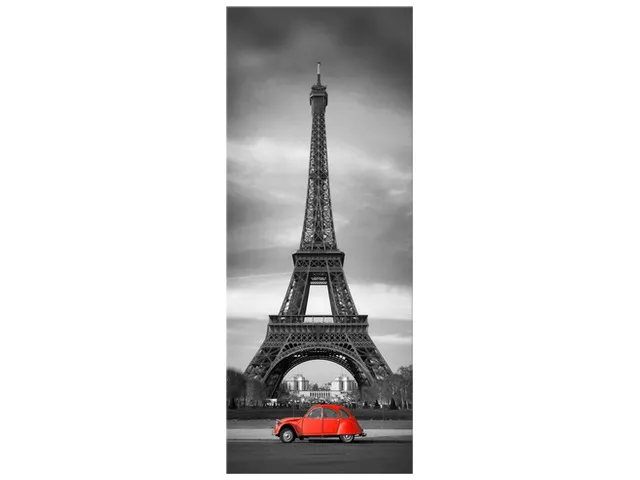1116A_1K Obraz na plátne Červené auto pred Eiffelovkou |