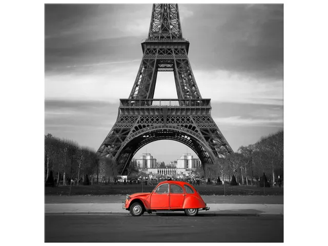 Úvod » Obrazy » Obraz na plátne Červené auto pred Eiffelovkou
