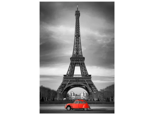 1116A_1Q Obraz na plátne Červené auto pred Eiffelovkou |