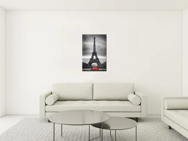 1116A_1N Obraz na plátne Červené auto pred Eiffelovkou |