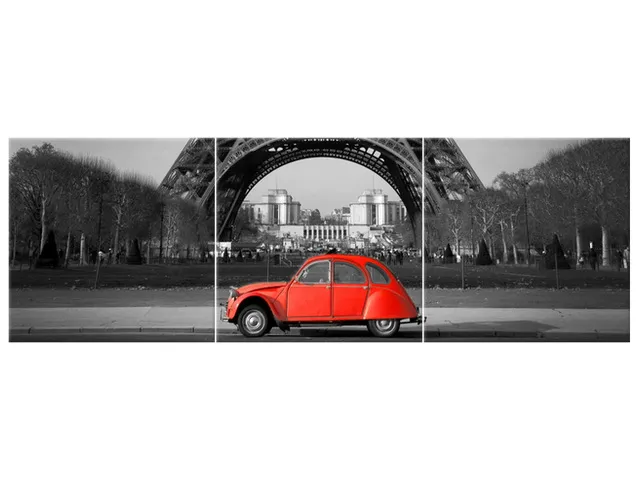 Úvod » Obrazy » Obrazy na plátne » Príroda » Obraz na plátne Červené auto pred Eiffelovkou