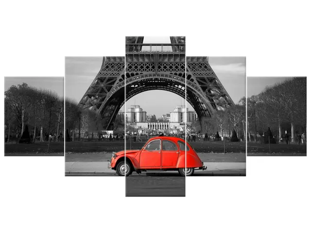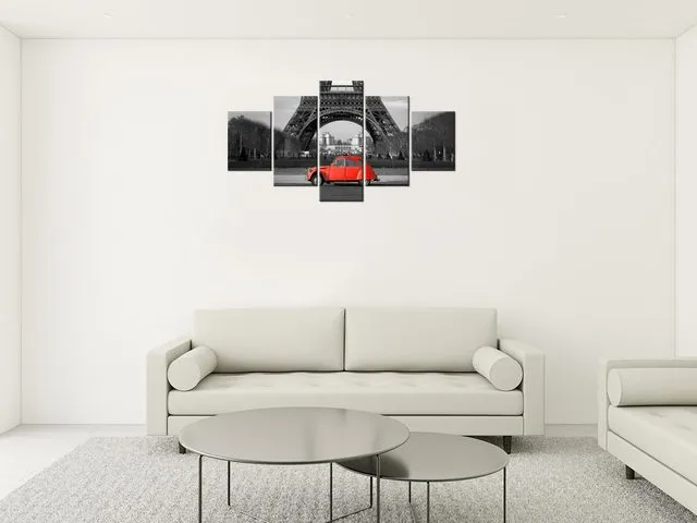 Úvod » Obrazy » Obrazy na plátne » Príroda » Obraz na plátne Červené auto pred Eiffelovkou