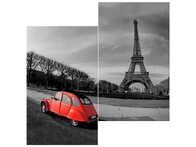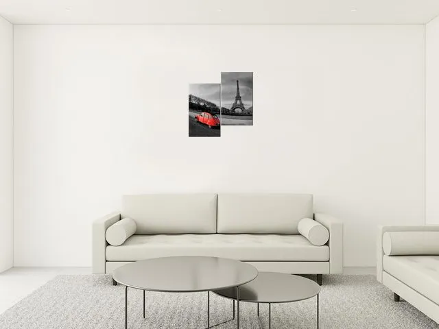 Úvod » Obrazy » Obrazy na plátne » Príroda » Obraz na plátne Červené auto pri Eiffelovke
