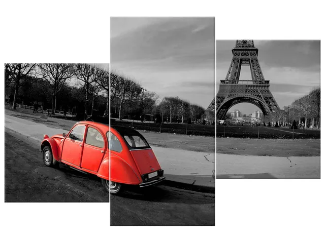 Úvod » Obrazy » Obrazy na plátne » Príroda » Obraz na plátne Červené auto pri Eiffelovke