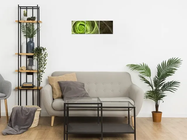 4957A_3AX Obraz na plátne Fraktálna ruža v zelenej |