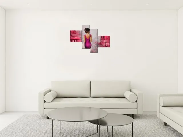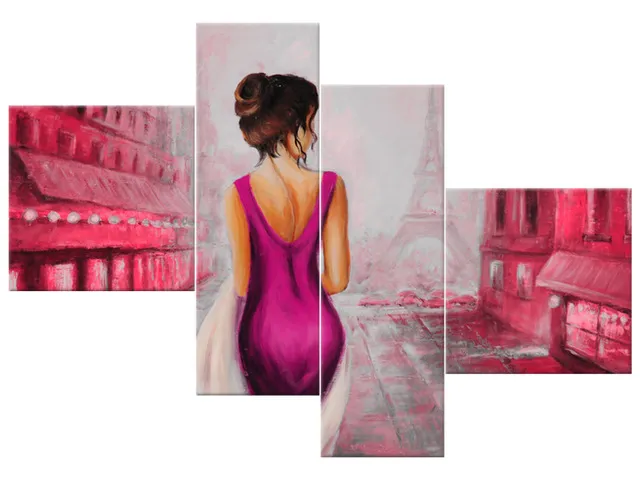 4611A_4E Obraz na plátne Prechádzka v Paríži v ružovej |