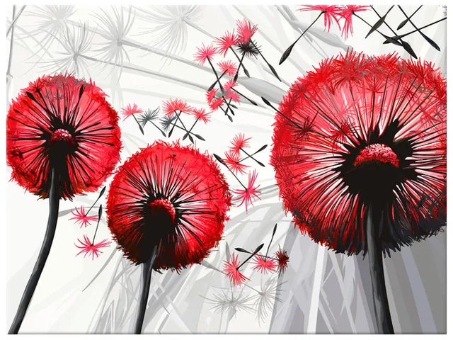 Úvod » Obrazy » Obrazy na plátne » Kvety » Obraz na plátne Púpavy v červenej farbe
