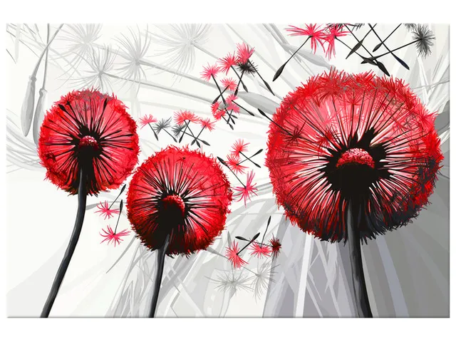 Úvod » Obrazy » Obrazy na plátne » Kvety » Obraz na plátne Púpavy v červenej farbe