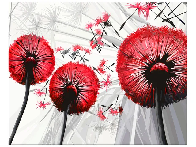Úvod » Obrazy » Obrazy na plátne » Kvety » Obraz na plátne Púpavy v červenej farbe