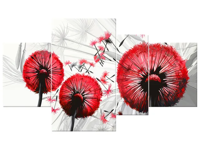 Úvod » Obrazy » Obrazy na plátne » Kvety » Obraz na plátne Púpavy v červenej farbe