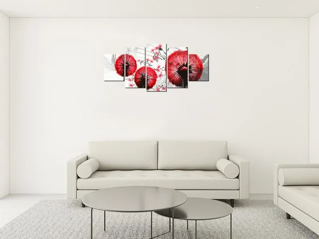 Úvod » Obrazy » Obrazy na plátne » Kvety » Obraz na plátne Púpavy v červenej farbe