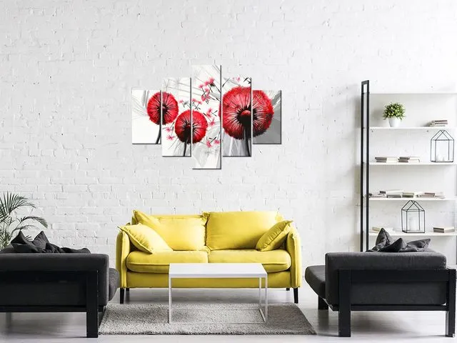 Úvod » Obrazy » Obrazy na plátne » Kvety » Obraz na plátne Púpavy v červenej farbe
