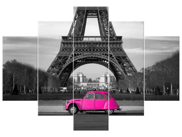 Úvod » Obrazy » Obrazy na plátne » Príroda » Obraz na plátne Ružové auto v Paríži