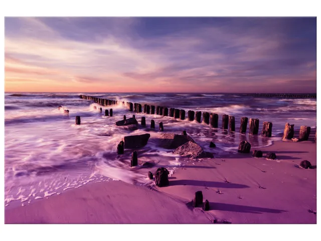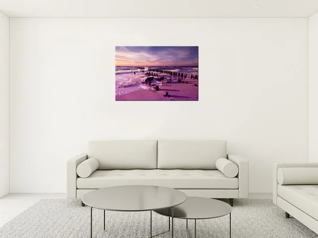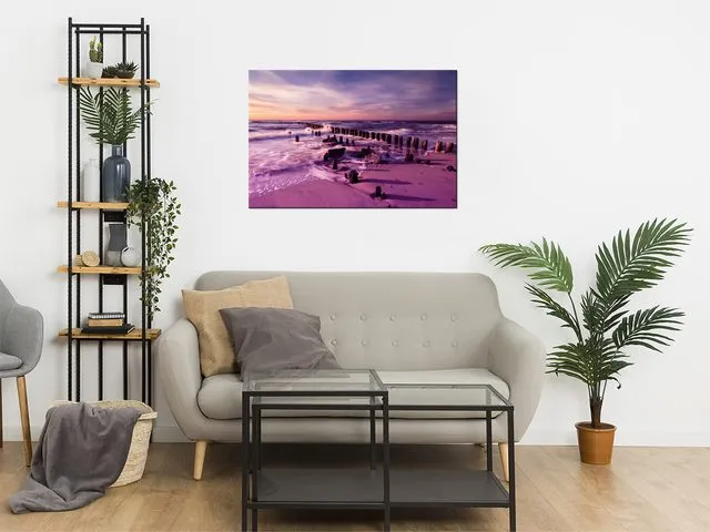 Úvod » Obrazy » Obrazy na plátne » Obraz na plátne Západ slnka nad morskou plážou vo fialovej