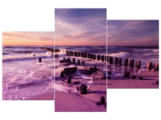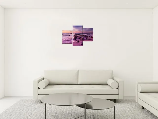 3124A_3V Obraz na plátne Západ slnka nad morskou plážou vo fialovej |