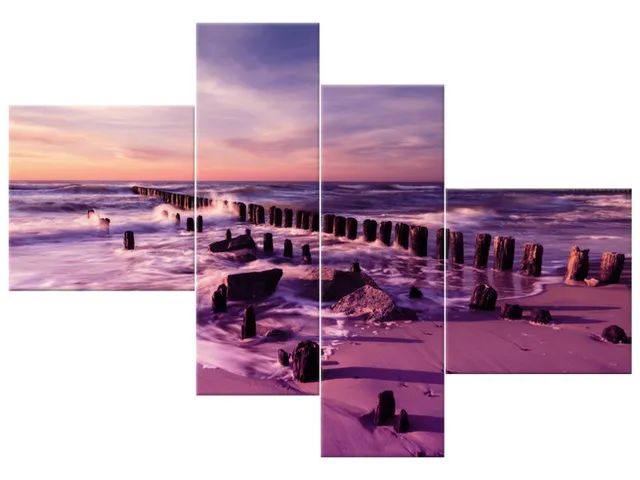 Úvod » Obrazy » Obraz na plátne Západ slnka nad morskou plážou vo fialovej