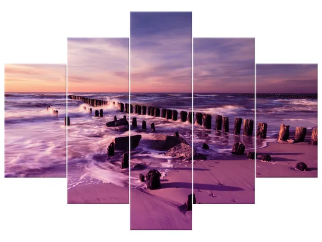 3124A_3V Obraz na plátne Západ slnka nad morskou plážou vo fialovej |
