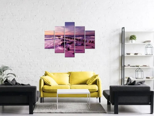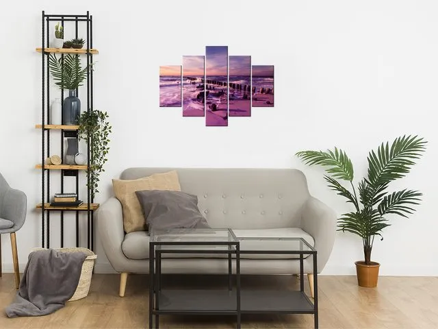 3124A_5A Obraz na plátne Západ slnka nad morskou plážou vo fialovej |