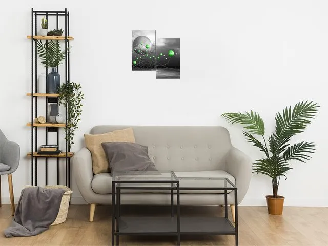 5592A_2J Obraz na plátne Zelené gule na sivom pozadí |