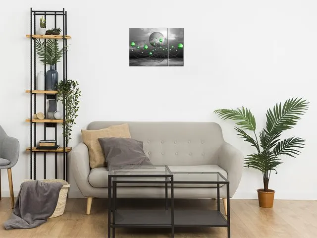5592A_2J Obraz na plátne Zelené gule na sivom pozadí |