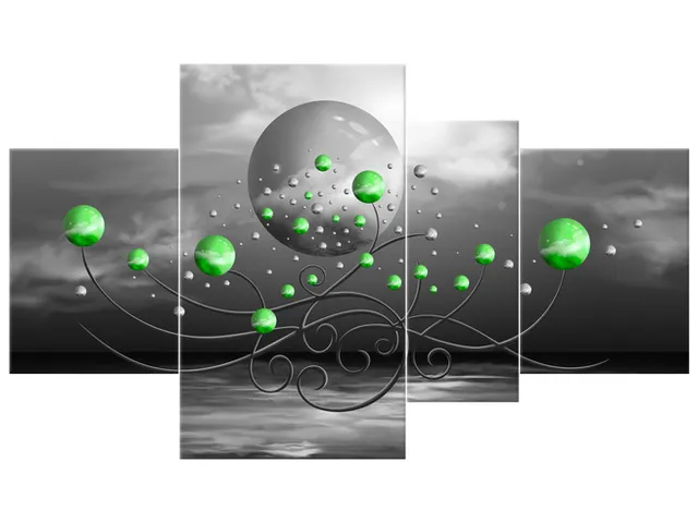 5592A_4M Obraz na plátne Zelené gule na sivom pozadí |
