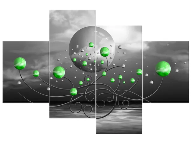 5592A_4M Obraz na plátne Zelené gule na sivom pozadí |