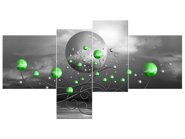 5592A_4M Obraz na plátne Zelené gule na sivom pozadí |