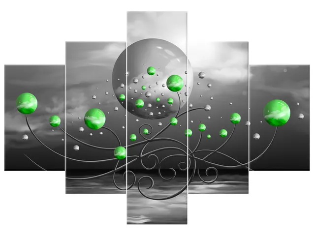 5592A_5H Obraz na plátne Zelené gule na sivom pozadí |