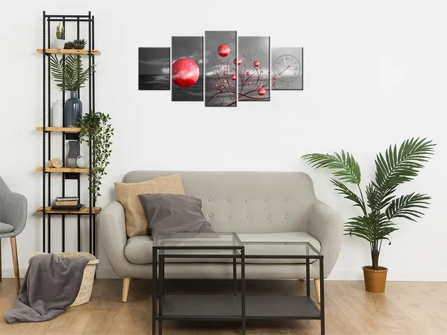 ZP5602A_3AX Obraz na plátne s hodinami Červené gule v noci |