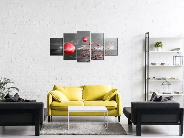 ZP5602A_3K Obraz na plátne s hodinami Červené gule v noci |