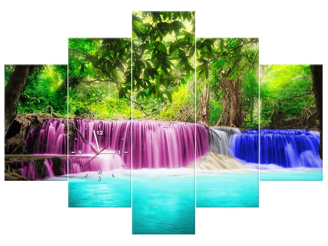 Obraz na plátne s hodinami Farebný vodopád