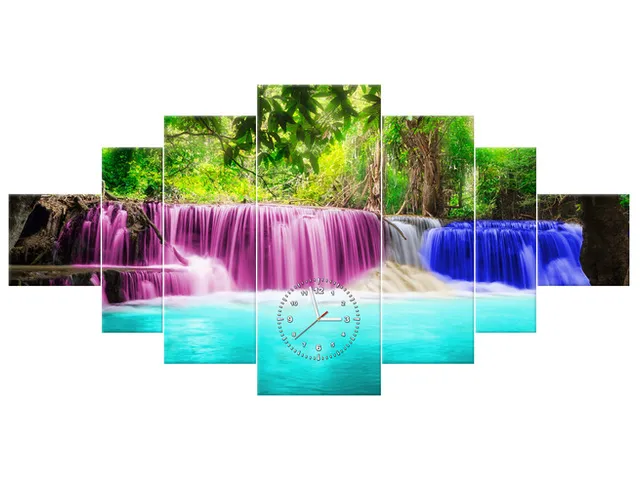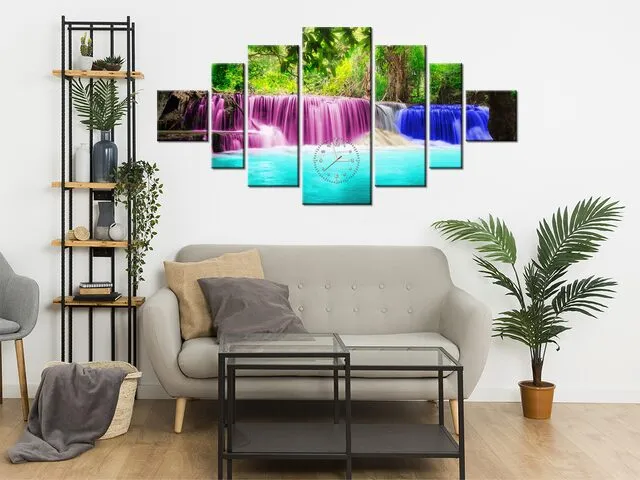Úvod » Obrazy » Obrazy s hodinami » Obraz na plátne s hodinami Farebný vodopád